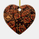 This heart-shaped ornament exudes a warm, exotic feel. Featuring a detail image of a rich, ornate rug.