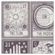 Illustrated Major Arcana tarot cards. Featured: 0-21 cards - The Fool, The Magician, The High Priestess, The Empress, The Emperor, The Hierophant, The Lovers, The Chariot, Strength, The Hermit, Wheel of Fortune, Justice, The Hanged Man, Death, Temperance, The Devil, The Tower, The Star, The Moon, The Sun, Judgement and The World - ivory, pearl, plum, purple