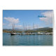 View of blue sky, ocean and yachts, Majorca, Spain. Painting effect.