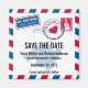 A fun creative Wedding Save the Date to send to all your guests announcing your destination wedding. Map of Majoraco Spain with red and blue airmail design. If you have a different location please let me know and I'll set one up for that location. email paula@labellarue.com