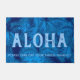 Blue colorway. The message of Aloha welcomes your visitors to your own tropical paradise. Swaying palm trees remind us of the tropical beaches of Hawaii. This textile uses those wind touched large palm leaves in a tonal colour combination. This design comes in several colour ways. You can customise the message.