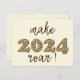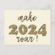 NewParkLane - Fun New Year's postcard with quote in fun leopard pattern typography: 'Make 2024 roar!'. The backside has a Happy New wish in an elegant script typography.