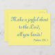 A postcard offering inspirational praise, this design features "Make a joyful shout to the Lord, all you lands!" Psalm 100:1 is written in lovely blue font on a yellow background. Eye-catching and lovely, your loved ones with enjoy this greeting.