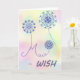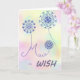 Cute card with three flowers, colourful background. Text is make a wish. The card is blank inside for you to personaliza with your own words.