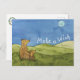 Make A Wish Stargazing Postcard. Handpainted bears looking up at the night sky.