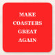 Coasters decorative tabletop protectors for beverage drinking cups and glassware etc. printed with a Make America Great Again play on words and product names with white text on MAGA red background colour style by TheFabricSeal print on demand shop at Zazzle.com #ZazzleMade https://www.zazzle.com/store/thefabricseal TheFabricSeal©️Original. This is a play on words from President Donald Trump's famous quote "Make America Great Again"