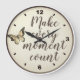 Inspirational quote in modern script, butterfly graphic and modern clock face on ivory background