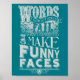 A typographic design letting everyone know that words aren't always your preferred way to communicate. "Words sometimes fail me. When that happens, I make funny faces." Choose your favourite background colour!