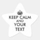 Make customised star keep calm stickers with this template. It has the keep calm crown logo in black and words in black letters. It says Keep Calm and Your Text.