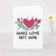 Beautiful Make Love Not War design featuring a hippie seventies inspire design with some cool flowers, hearts and stars.