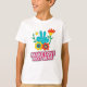 The t-shirt feels and looks great quality, a good thick cotton. It will be a little big for my son, but that means he will be able to wear it and not out grow it too soon. The print was as described on the order when personalised. True size, shape and colour T-shirt- thanks.