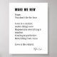 Make Me New Love Encouragement poem poetry poster wall art decor black and white