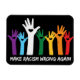 Colourful anti-racism design features a "rainbow" of hands with heart cutouts and white "make racism wrong again" text.