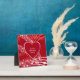 Stylish, contemporary personalised HEARTS AND MUSIC Valentine's Day Card, showing white and peach music staves against a rich red background, and a heart at the centre with CUSTOMIZABLE TEXT, which you can personalise with your name(s) and message. It currently says WE MAKE SWEET MUSIC TOGETHER. This would make a great gift for VALENTINE'S DAY, but can also be customised for Anniversaries, Birthdays and 'Just Because' days. Matching gifts available