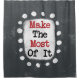 Bold text reading "Make The Most Of It" is centred against a grey background. The black text sits on a white rectangle with large textured white dots around it, providing a playful contrast against the solid colour backdrop.