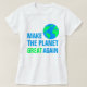 Image of blue and green planet Earth and the text Make The Planet Great Again of the same colours. Funny t-shirt for women. Customisable. You can change the image and all the texts. Do not forget to choose another style, colour and gender of the shirt.