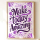 Ignite your day with positivity and purpose with this vibrant "Make Today Amazing" art print. Featuring bold, hand-lettered typography in shades of purple, accented with playful brushstrokes and starbursts, this piece is a powerful reminder to seize the day and make it extraordinary. Perfect for adding a burst of inspiration and a pop of colour to your office, bedroom, or living space.