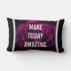 A lumbar pillow with the inspirational text: make today amazing. Designed with a photograph of a mysterious purple-pink gothic rose.