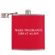 Well made flask, a little better than I had expected. Flask came in clear plastic box which gave it a nice presentation when I took it out of the zazzle packaging. Image is not printed on flask but on sticker. Don't know how this will hold up I haven't used it yet. This would make a Great gift! I plan to purchase more for friends! Cheers. I thought a little brighter than computer. Very crisp, writing wasn't