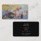 Be original and make a statement with these unique makeup artists business cards. On the front of these original cards there's an image of a floral make up bag with all the contents spilling out, the red lipstick, powder compact, eyeshadows and other make up products, are well used and there's even a used peice of cotton wool. The bag and makeup are vintage style and the powder compact has an old fashioned image on the front. The image is a quirky original still life water-colour painting. You can personalise these business cards by adding your own name, profession and contact details and colours.