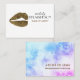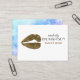 Elegant matte paper professional square business card golden lips drawing. Elegant back with colourful marble texture. Easy to personalise it.