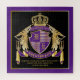 Create your very own aristocratic Coat of Arms, Emblem, Insignia or Family Crest with this beautiful, classic escutcheon or shield design. Royal purple patterns decorate a shield topped with a golden crown and flanked by a classical angel with trumpet and lyre. A matching top banner holds your custom wedding date / birth date / slogan or battle cry. The shield has space for your monogram initials. Bottom banner carries your family name. There is also space below for your favourite quote, motto or message. Replace the sample text with your own for a personalised gift. A gender neutral design that will work for families, groups, couples or individuals. Makes a wonderful gift for Wedding, Anniversary, Birthday, Retirement, Promotion, Father’s Day, Bachelor Party, Wedding Shower, Graduation, International Heraldry Day, Mediaeval or Fantasy-themed parties and other special occasions.