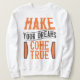 This long-sleeve t-shirt features the inspiring phrase "Make Your Dreams Come True," elegantly printed in a whimsical font. It’s more than just a piece of clothing; it's a daily reminder to chase your aspirations and believe in yourself. The shirt’s soft, cosy fabric makes it perfect for layering or lounging, while its uplifting message resonates with anyone who has ever dared to dream big. Whether you're wearing it on a casual day out or during a quiet moment of reflection, this t-shirt serves as a motivating companion on your journey towards achieving your goals. Its special significance lies in its ability to inspire hope and encourage positivity, making it a favourite in any wardrobe.