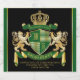 Create your very own aristocratic Coat of Arms, Emblem, Insignia or Family Crest with this beautiful, classic escutcheon or shield design. Dark green patterns decorate a shield topped with golden crown and flanked by mediaeval heraldic lion or griffin. A matching top banner holds your custom wedding date / birth date / slogan or battle cry. The shield has space for your monogram initials. Bottom banner carries your family name. There is also space below for your favourite quote, motto or message. Replace the sample text with your own for a personalised gift. A gender neutral design that will work for families, groups, couples or individuals. Makes a wonderful gift for Wedding, Anniversary, Birthday, Retirement, Promotion, Father’s Day, Bachelor Party, Wedding Shower, Graduation, International Heraldry Day, Mediaeval or Fantasy-themed parties and other special occasions.