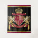 Create your very own aristocratic Coat of Arms, Emblem, Insignia or Family Crest with this beautiful, classic escutcheon or shield design. Crimson red patterns decorate a shield topped with golden crown and flanked by mediaeval heraldic lion or griffin. A matching top banner holds your custom wedding date / birth date / slogan or battle cry. The shield has space for your monogram initials. Bottom banner carries your family name. There is also space below for your favourite quote, motto or message. Replace the sample text with your own for a personalised gift. A gender neutral design that will work for families, groups, couples or individuals. Makes a wonderful gift for Wedding, Anniversary, Birthday, Retirement, Promotion, Father’s Day, Bachelor Party, Wedding Shower, Graduation, International Heraldry Day, Mediaeval or Fantasy-themed parties and other special occasions.