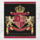 Create your very own aristocratic Coat of Arms, Emblem, Insignia or Family Crest with this beautiful, classic escutcheon or shield design. Crimson red patterns decorate a shield topped with golden crown and flanked by mediaeval heraldic lion or griffin. A matching top banner holds your custom wedding date / birth date / slogan or battle cry. The shield has space for your monogram initials. Bottom banner carries your family name. There is also space below for your favourite quote, motto or message. Replace the sample text with your own for a personalised gift. A gender neutral design that will work for families, groups, couples or individuals. Makes a wonderful gift for Wedding, Anniversary, Birthday, Retirement, Promotion, Father’s Day, Bachelor Party, Wedding Shower, Graduation, International Heraldry Day, Mediaeval or Fantasy-themed parties and other special occasions.