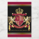 Create your very own aristocratic Coat of Arms, Emblem, Insignia or Family Crest with this beautiful, classic escutcheon or shield design. Crimson red patterns decorate a shield topped with golden crown and flanked by mediaeval heraldic lion or griffin. A matching top banner holds your custom wedding date / birth date / slogan or battle cry. The shield has space for your monogram initials. Bottom banner carries your family name. There is also space below for your favourite quote, motto or message. Replace the sample text with your own for a personalised gift. A gender neutral design that will work for families, groups, couples or individuals. Makes a wonderful gift for Wedding, Anniversary, Birthday, Retirement, Promotion, Father’s Day, Bachelor Party, Wedding Shower, Graduation, International Heraldry Day, Mediaeval or Fantasy-themed parties and other special occasions.