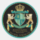 Make Your Own Coat of Arms Teal Gold Bear Emblem Classic Round Sticker