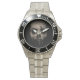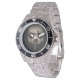 Has heft and feel of expensive stainless steel quartz watches. Good band with safety catch. I removed links, which is easy because engraved arrows show direction to push the linking pins. As always by this seller, the image (a railroad logo) is a perfect reproduction of my emailed image, and is precisely spaced and aligned.