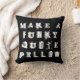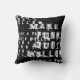 Use this template to design your own personalised black and white funky quote throw pillow. Reversible. Large bold quote on front; funky urban grunge typography word collage on back.