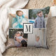 Make your own photo collage and monogram personalised Throw Pillow. This modern pillow displays a collage of four family photos and your monogram on the front and four different photos on the back. In the centre there is a frame with your monogram. Just change images and monogram to create your own! Photography © Storytree Studios, Stanford, CA
