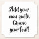 Make your own quote personalised square paper coaster! Choose from Zazzle fonts, text colours and size!