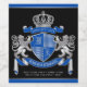 Create your very own aristocratic Coat of Arms, Emblem, Insignia or Family Crest with this beautiful, classic escutcheon or shield design. Cobalt Blue patterns decorate a shield topped with silver crown and flanked by medieval heraldic lion or griffin. A matching top banner holds your custom wedding date / birth date / slogan or battle cry. The shield has space for your monogram initials. Bottom banner carries your family name. There is also space below for your favorite quote, motto or message. Replace the sample text with your own for a personalized gift. A gender neutral design that will work for families, groups, couples or individuals. Makes a wonderful gift for Wedding, Anniversary, Birthday, Retirement, Promotion, Father’s Day, Bachelor Party, Wedding Shower, Graduation, International Heraldry Day, Medieval or Fantasy-themed parties and other special occasions.