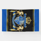 Create your very own aristocratic Coat of Arms, Emblem, Insignia or Family Crest with this beautiful, classic escutcheon or shield design. Cobalt blue patterns decorate a shield topped with a golden crown and flanked by mediaeval heraldic unicorns. A matching top banner holds your custom wedding date / birth date / slogan or battle cry. The shield has space for your monogram initials. Bottom banner carries your family name. There is also space below for your favourite quote, motto or message. Replace the sample text with your own for a personalised gift. A gender neutral design that will work for families, groups, couples or individuals. Makes a wonderful gift for Wedding, Anniversary, Birthday, Retirement, Promotion, Father’s Day, Bachelor Party, Wedding Shower, Graduation, International Heraldry Day, Mediaeval or Fantasy-themed parties and other special occasions.