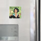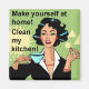 This is a fun magnet for your home. It has a drawing of a well dressed lady drinking a cup of coffee while it states: Make yourself at home! Clean my kitchen.