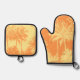 Makena Beach Hawaiian Sketchy Palms Lemon Oven Mitt & Pot Holder Set