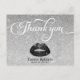 Makeup Artist Black Glitter Lips Silver Thank You Postcard