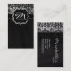 Cosmetology Business Card for nail or hair salon or Spa with pretty floral / flower damask pattern in silver grey and black with monogram frame. Great for any avon or mary kay rep.