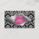 Makeup Artist Business Cards Pink Lips Damask Silv