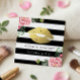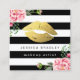 Makeup Artist Gold Lips Floral Black White Stripes Square Business Card