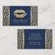 Makeup Artist Gold Lips Luxury Leopard Navy Blue Business Cards.