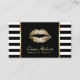 Makeup Artist Gold Lips Modern Stripes Loyalty Card