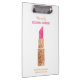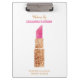 Personalised Makeup Artist Gold Sequin Watercolor Beauty Salon Lipstick Clipboard. Faux gold sequin glitter and pink watercolor lipstick. Add name, title and contact info to front and back of clipboard. Beauty business office supplies. www.SamAnnDesigns.com