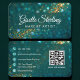 Professional green and gold business card for makeup artists featuring a QR code layout. Designed so clients can quickly book appointments, view your portfolio, or save your contact details with a simple scan. Ideal for freelance makeup artists, beauty studios, bridal makeup, events, and client referrals. Editable text and QR destination. Clean print-ready layout.