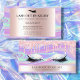 Platinum silver metallic faux foil glitter and a rainbow iridescent simulated holographic print liquid texture set the tone for this customisable business card template, featuring eyelids with a soft pastel opal glowing iridescent gradient texture eyeshadow and simulated quartz gemstones.