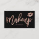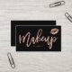 An elegant,modern, stylish makeup artist business card with lips stylish script hand lettering style typography in faux rose gold foil on a simple customisable black background. If you need any customisation, don't hesitate in contacting me